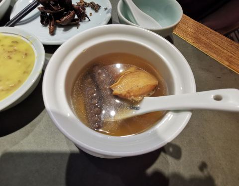 他家的带鱼很不错,每块都很大,说是进口的,肉很厚,不错,茅台大虾也不错,虽然不知道用的是不是真的茅台,但酒香味确实不错,而且去掉了大虾的腥气,让虾肉更嫩了,还有羊汤,放了胡椒,冬天喝驱寒