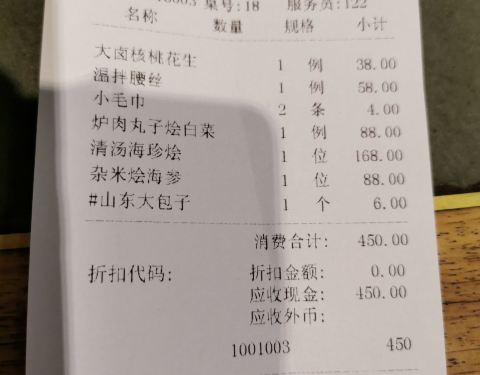口味很正宗的鲁菜,比较清淡。服务员的服务也很好。价钱呢,就稍微有点贵,二人消费450元