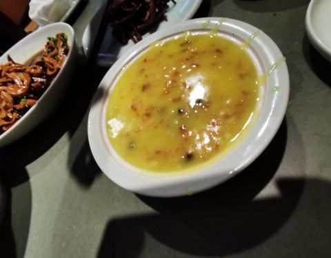 又一次来了。这里停车位不多,还好,我们赶上了最后一个免费车位。羊汤非常好。上次是羊肉汤,这次换了羊杂汤尝尝。也非常好喝。其它的菜也很有特点。这家店环境很好,古色古香,有大厅有包间。房间里有一种老宅的味道。
