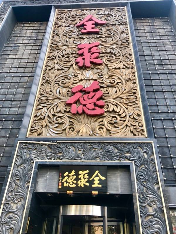 “驰名中外”的京城“饮食”名片,提到烤鸭,必连着他家的名号。挂炉烤鸭确实做得“不错”,“入口即化”的“酥脆”外皮,“肥而不腻”的鸭肉,搭配“薄嫩”的春饼,“香甜”的面酱,“绿色”的香葱和黄瓜,“别有一番风味”。其他鸭菜也“很美味”,芥末鸭掌、盐水鸭肝值得一试。价格“有些贵了”,家庭聚餐得掂量掂量。