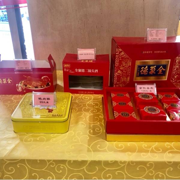 幹燒四鮮 麻辣鸭膀丝 牛肉粒 黑胡椒牛肉粒 鸭汤 杨枝甘露 鸭丝春卷 全聚德烤鸭 五谷素参 没有 豌豆黄 腩肉烧双菌 烤鸭 多宝鱼 蓝莓山药 双菌烧肉 水晶鸭肝 芥末鸭掌 京味豆腐 火燎鸭心 四季烤麩 宫保脆皮鱼 乌鱼蛋汤 盐水鸭肝