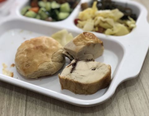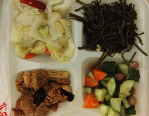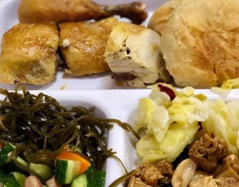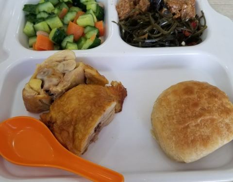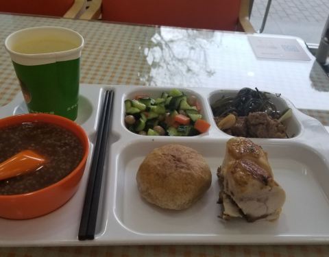 烤鸡套餐,有鸡块、烧饼、4样小凉菜、粥,营养齐全,鸡块皮脆肉嫩,味道不错。