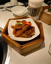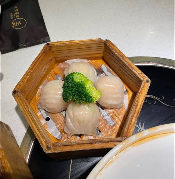 元宵节当天和家人小聚,没有预定只能踩点在刚开始营业就提前拿号。在门口的应该是店长,忙碌但有条不紊。听我决定取号等待,匆忙中又提醒店员不要把我的号过掉。四星的服务都是给店长的,元宵节当天有些忙碌,店员可能还需要一些培训和熟练的时间。 四个人点了九道菜,花生芽炒牛肋条,凤爪,红米虾肠,虾饺,招牌的佛跳墙,脆皮豆腐,叉烧拼脆皮烧肉,煎虾饼,还有一道不太记得了。 佛跳墙建议趁热吃,由于我们等人齐了后才吃的,佛跳墙有点凉了,吃起来有点咸和腻,很可惜。建议餐厅在佛跳墙的煲下放一个加热的小蜡烛,毕竟就算人齐了一人一碗,也没办法一次性都吃完。 凤爪,虾饺和煎虾饼无功无过。红米虾肠有点失望,脆皮不脆,影响口感,盲猜是当天很忙提前备了料。花生芽第一次吃,很新鲜,脆生生的。 脆皮豆腐是最喜欢的,口感非常好,是沙沙的脆。外沙内软,内酯豆腐也有滋味,酱料酸甜解腻,吃到这一餐的最后也还是一样的口感,好评。 原以为四个人吃饭要七八百,没想到五百左右,也可能是我们没有点单价高的单品。总体来说性价比还可以。