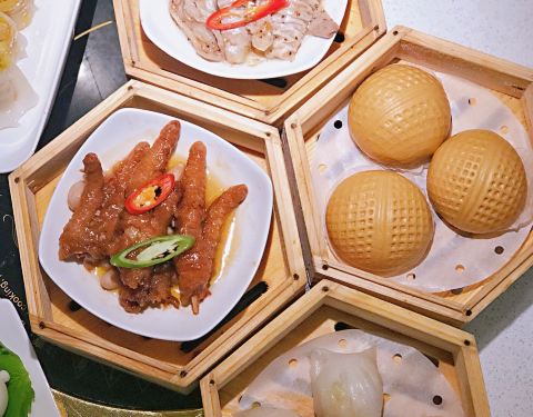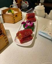 - 点心品种很多,牛肉丸很大一个,粉果颗粒馅料丰富。鱼生还不错,口味已经接近当地的了,服务员会帮忙拌好