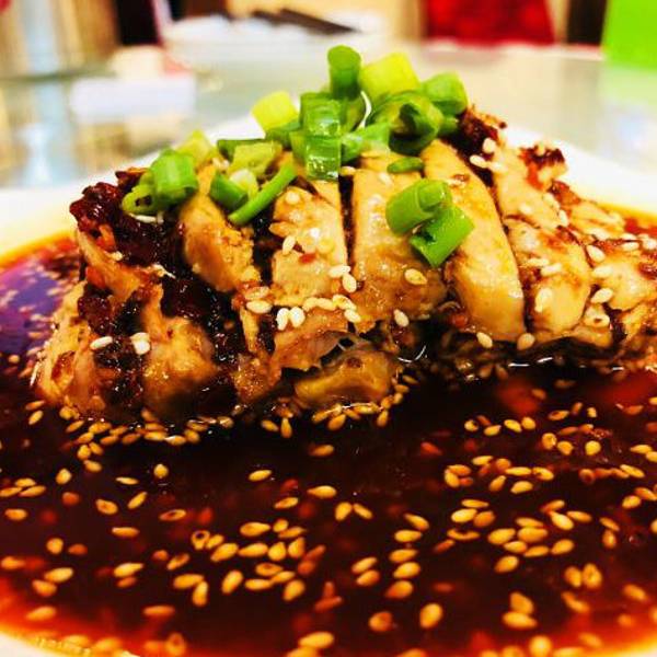 宫保鸡丁跟口水鸡基本上是必点的。这俩菜一共40左右。通常会再点个水煮牛肉,32吧貌似。两个人三个菜相当的惬意了。 - 四川凉面,同样是料很好,有一点甜口,而且麻辣味十足,但是面特别不好,糟糟的。来说说菜 口水鸡,够味实用