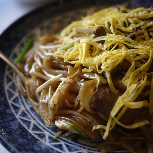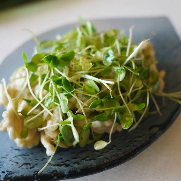 吃粤式料理,怎么能少了干炒牛河,粤尚的牛河有点儿湿润,少油,互不沾粘。配菜比一般的干炒牛河要丰富一些。豆苗拌鲜核桃仁