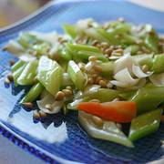 如果没记错的话,上面的绿菜好似是香椿。这道的特点是油份掌握的刚刚好,酥脆可口,虾球的水分又不脱。鲜百合松子炒西芹