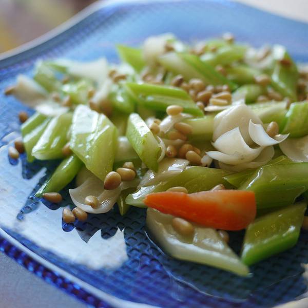...看起来普通,其实如果百合的颜色和口感刚刚好的话是不容易炒的,加入松子使得整道菜显得口感更丰满了
