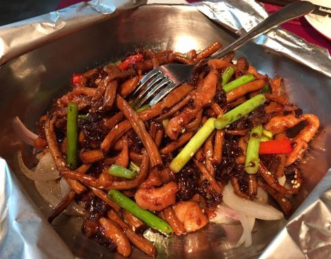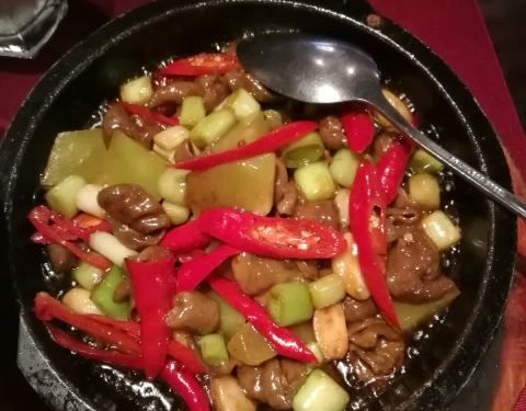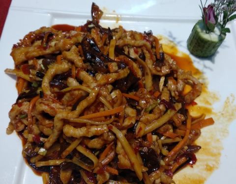 鱼香肉丝有点咸,小炒肉没有味道,最可气的是青椒有机豆付一个青椒也没有,而且就我一个人点了三个菜,服务员还向我推荐羊小腿???