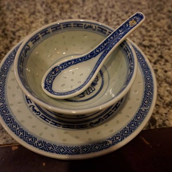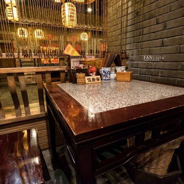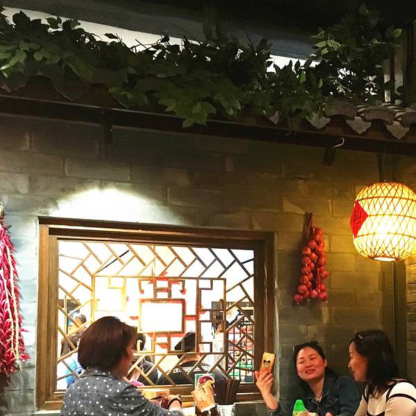 南京大牌档主打民国风,这一点从店面装修到服务员的服饰再到使用的餐具等各种小细节都体现得很详尽。店里装修多采用木质、竹制品,桌椅使用八仙桌和古风的六边桌,装饰品都是红灯笼、串辣椒这些,古风古韵。在店堂里面还能看到民国时候的屋檐、垂帘和故意做旧的砖墙。进到里面才知道,整个饭店面积是很大的,但是真的是人满为患,所以想要好好拍照是不可能的,也不要幻想可以在这边拍古装大片了,除非你是在人家快要打烊的时候进来。大堂里面的桌子不大,而且大多数位置都是坐满人的,桌子间隔很小,体格大一点的相邻两个人非常有可能随时进行亲密接触。因为桌子比较小,所以我们四个人坐下来,餐具摊开来以后觉得非常局促,点菜当然也不敢大手大脚了,免得整个桌子摆不下菜。古风的餐具,拿起来有一种沉沉的感觉,应该质量很好。