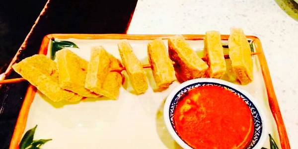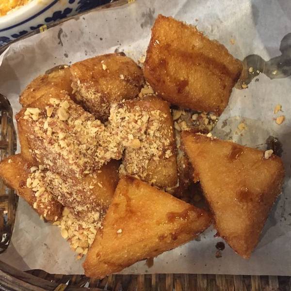 还有一个炸年糕,沾着花生米吃的,一时忘记名称,年糕炸得金黄酥脆,里面却很软Q,很喜欢那样的搭配
