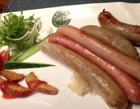1432德国花园餐厅,听名字就感觉很时尚,1432,这串数字很有来头,餐厅位于水游城B145号,想想看145分开来不就是1432么,真的很有意思。餐厅还有更多特色,餐厅门口就是水塘,坐在靠窗位上,透过明亮的玻璃窗户,偶尔还能看到喷泉,很漂亮。西式化的装修,红色木漆椅,德式的白色大吊灯,一盏盏都是伞状,感觉好温馨,还有大片的绿色植物,更是让人心情悦! 还有砖砌的墙面,上面挂有德国各个地区的美景,来这里不仅能品尝美食还能了解一国文化,处处体现异国风情。 餐厅菜也做得不错,香肠开会,是香肠的汇合,维也纳烤肠、西班牙烤肠等