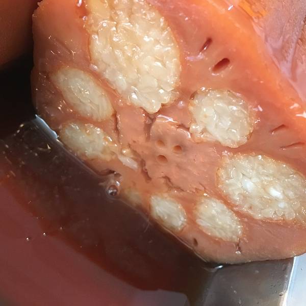 - 浇一点冰糖和蜂蜜的卤汁,藕的软烂,糯米的香糯,蜂蜜的香甜都融合在了一起