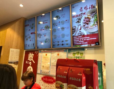 点了鸭血鸭肝粉丝,13元。锅巴2元。吃下来感觉鸭血不滑,鸭肠不脆。不谈有没有做过,单论...因为鸭鲜芝装修,所以转头鸭德堡门下。外观看看挺小,进去倒是几进几出,面积不小。柜台点单,旁边就是配菜区,挺方便。
