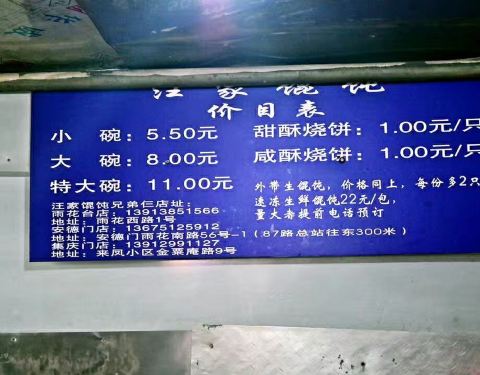 - 惨痛的教训,没注意营业时间,忍着没吃午饭赶到汪家馄饨,大门紧闭,下午2点后不营业。馄饨味道不错