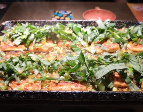 【烤脑花】不错,脑花很嫩,豌豆和小葱配着感觉增加了脑花的清甜味。