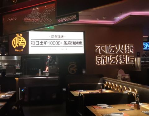 地方挺大的。表妹不能吃辣,就点了酸辣烤鱼,以前跟朋友基本都是吃麻辣 两个人食量有限,只点了鱼,没单独加素菜在里面了,每次必点的包浆豆腐,烤的掌中宝还是一如既往的好吃。 服务还不错的。吃饭间隙看到一...