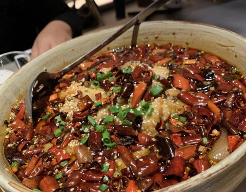 奉天小馆是东北菜里比较有名的餐厅了吧,沈阳大悦城这家在大悦城A座四楼,电梯上来就能看见,比较好找,小米炖牛肉还挺好吃的,水煮鱼也不错。