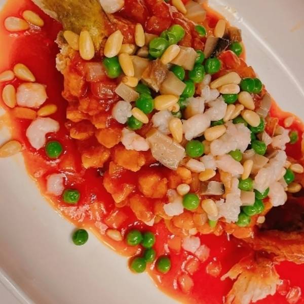 - 因为只能预订17:30的,我们下午1点多才吃得饱饱的,都不是很饿,点了几个金陵饭店的特色菜来配酒