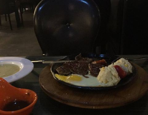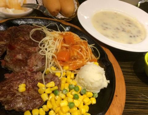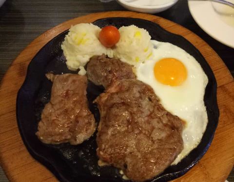 食材新鲜,盛食物的器皿可爱乖巧,牛排柔韧有嚼劲味道棒!