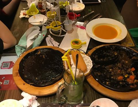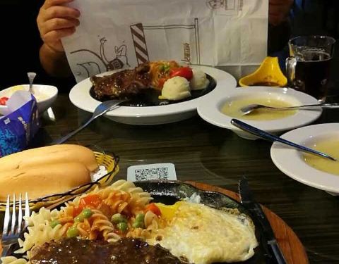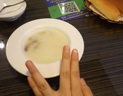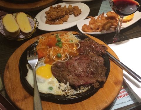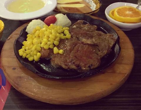 第一次支付宝写评价。厕所的洗手液,味道特别难闻,像上海药皂的味道,吃牛排的时候,味道一直往鼻子里冲,难闻的牛排都吃不下去。牛排味道很一般,本来要的蘑菇汤结果上成了玉米汤,我一开始没喝汤,吃完了准备喝汤才发现上错了。免费饮料看起来像酸梅汤喝起来像中药,点了一个柠檬气泡饮,里面的薄荷根本不是平常的那种薄荷,一点薄荷的清香味也没有,有一股苦味,问店家店家说一直用那种,我感觉孤陋寡闻了,薄荷拿出来以后,饮料真的不是我之前喝的味道,说不出来,也只喝了两口没喝了。感觉里面最好吃的就是免费的水果了。。