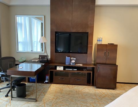 住了两晚,今年就是得空了就家门口这里住住那里住住。受特殊时期影响,酒店政策和房价都有让步空间,挺值得住的,因为这个城市逛街吃饭地方都太熟悉,希望进到酒店就可以“关起门”来放松,行政房含早三餐就不愁。 同样万豪酒店系列,同样行政房,我在喜来登感受超越了万豪。首先酒店做了一个升级到尊尚房型,景观好而且安静,独立衣帽间是我很喜欢的房型设计,喜来登在客房、更衣室、洗手间都有大面镜子,独立衣帽间落地镜,楼层电梯口有水果自取,客房服务响应真的非常迅速,瓶装水足量供应,其实喜来登价格比万豪会低一点的,但是服务和万豪相当,也许做了升级感受比万豪好。 早餐在二楼盛宴餐厅,单纯住酒店行政房带早会更理想,早餐公共餐厅往往比酒廊多很多吃的选择,喜来登盛宴比万豪都会尚膳食品选择更加多样,我住了一个周末一个工作日,早餐都比万豪那边人少,工作日就餐就非常轻松了。服务相当,但房间和餐饮性价比更高。