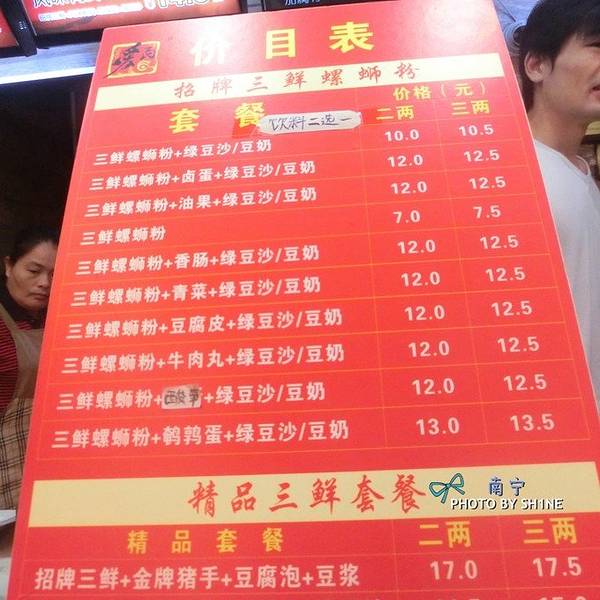 在南宁这家的螺丝粉味道比较正,取粉速度很快,来这这吃粉的人也挺多的,说明好吃。粉里的酸笋够味儿又特别嫩,大夏天吃着酸辣爽滑的螺丝粉,再来一口冰镇绿豆沙,怎一个满足了得!