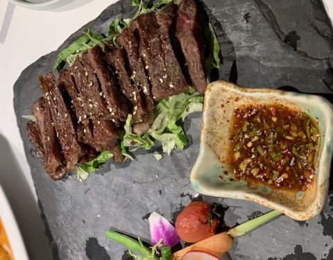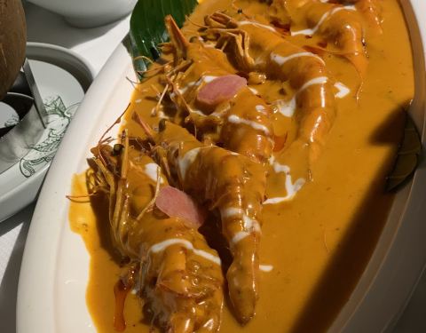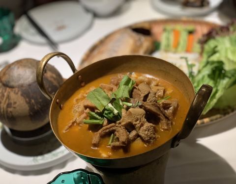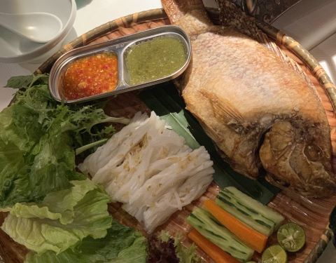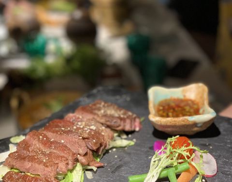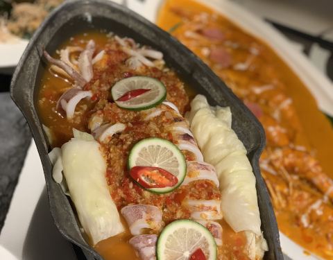 #去一次发现新大陆一次的泰国菜# 被他们的一道“跳舞小河虾”这道菜收服了,通行的小伙伴都觉得太泰国接受不了,这道菜真的很特别,味道很重,泰国酱料味很浓郁,甚至还有点咸鲜味~自己一个人把它吃完了❤️❤️被种草了。。。。 还点了一款叫“老虎哭”的网红菜品,其实就是烤牛肉,价格算实惠,比很多牛排店的牛排味道特别,外酥里嫩,主要还是靠泰式酱汁,搭配在一起味道很赞。 比较普通的是那个猪脚,可能因为会做猪脚的餐厅太多了,这个泰式猪脚味道有点普通,还可以加强~ 整体环境都不错,适合拍照也适合聚餐,很多都是情侣和朋友来的~推荐哟。