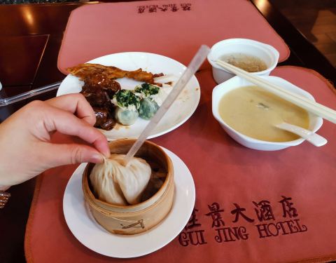 看了微博里宣传淮扬菜美食节去的好吃。适合我,蟹子汤包用吸管喝汁,太好吃了。