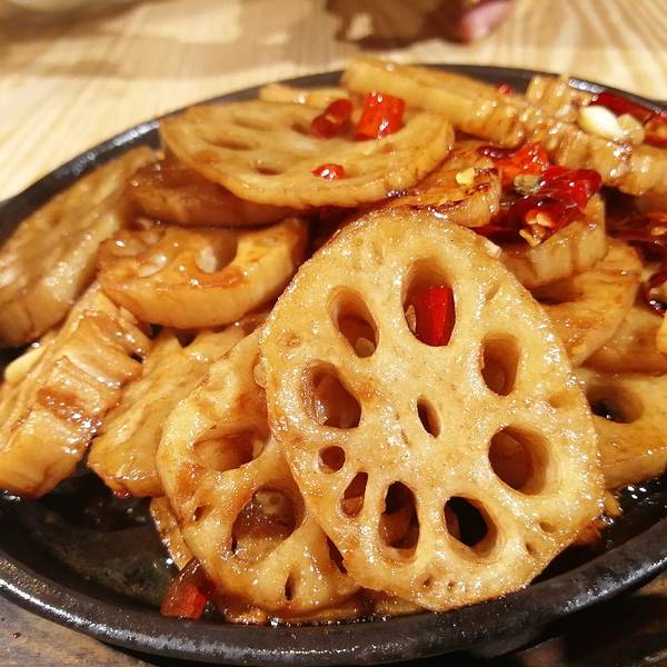 南宁心湘一瓣湘菜小馆的正宗长沙菜铁板藕片,锅气足、微辣味爽,大家抢着吃,我只吃到一片。