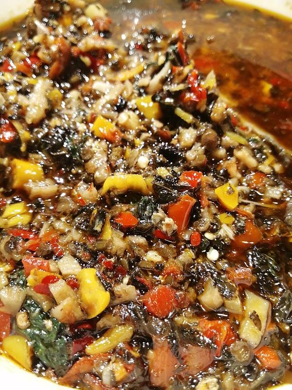 从来没想到红薯叶可以腌酸,在南宁心湘一瓣湘菜小馆吃到用它做的长沙菜“家乡薯叶煮黄骨鱼”,就让大咖们惊讶了,连剩下的汁都捞面吃了。