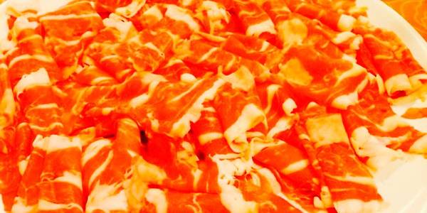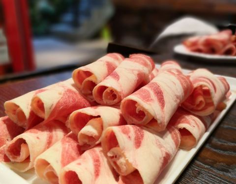 热门火锅店,羊肉薄厚均匀,毫无膻腥味。