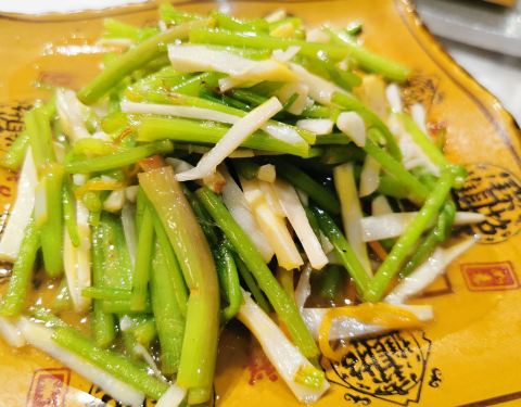 朴食,带来自然山野之味,自古文人墨客都喜欢隐居山林,估计就是冲着这样舒适的生活和美味的山珍吧 不一定要大鱼大肉,简单的野菜更有风味哦 野芹菜,口感非常独特哦,芹菜特有的香味配上酥嫩的口感,还是头一次吃到酥酥的芹菜呢👍 当地特色茅草根更是不能错过哦,外观看着像花生芽,入口却别有一番风味,既脆爽,又带着一点微酸,不得不说大自然的神奇孕育出这样的美味!