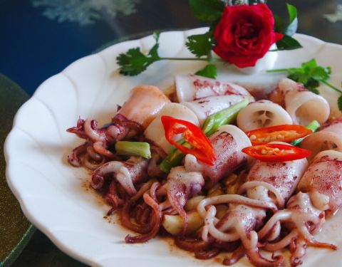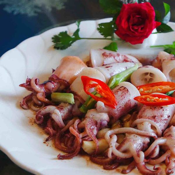 炝小卷,用最简单的做法呈现食材最原始的味道,小管外表脆弹,内里有膏。