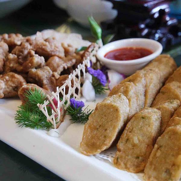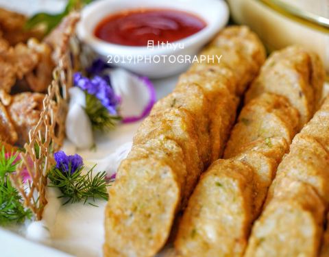 代表泉州和崇武特色的醋肉和鱼卷岂能不点,醋肉微酸香嫩,鱼卷咸香Q弹,双拼的形式能一次品尝两种口味,配上甜辣酱那就是满满闽南味。