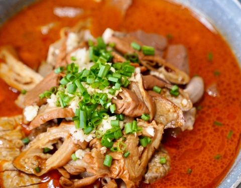 闽南人很喜欢番鸭和膏蟹,觉得这是很补的东西,对于我来说这个组合也确实够特别,泛着金色的汤头鲜美丰盈,满满的汤料在冬日里来上一碗真是暖心暖身。