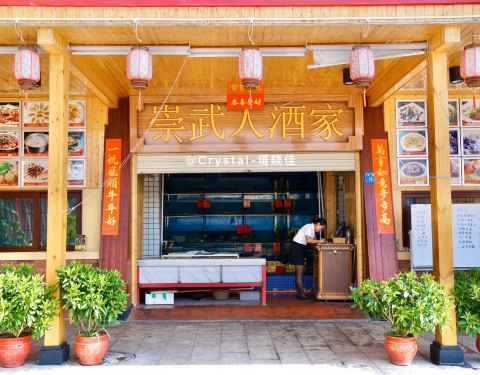 说到崇武这座颇具历史的地方,在吃货的脑袋中第一时间浮现的,肯定不是古城,而是那随处可见的鱼卷。其实崇武除了鱼卷,新鲜海鲜和特色美食也不少,而且通通可以在厦门这家开了20多年老牌酒家里吃遍——崇武人酒...说到崇武这座颇具历史的地方,在吃货的脑袋中第一时间浮现的,肯定不是古城,而是那随处可见的鱼卷。其实崇武除了鱼卷,新鲜海鲜和特色美食也不少,而且通通可以在厦门这家开了20多年老牌酒家里吃遍——崇武人酒家。 崇武人酒家位于东渡同益码头旁,主打崇武特色与闽南风味,传统菜做的很到位,在厦门本地生活的土著群里口碑一向不错,特别适合喜欢传统风味的家庭聚餐和商务宴请。 「醋肉拼鱼卷」这道招牌菜将鱼卷与醋肉双拼,贴心照顾了胃比心大的食客,醋肉的腌制比例上乘,炸制后口感很不错。鱼卷也是经过炸制的,爱鱼卷的别错过。 「崇武地瓜粉团」在泉州没来得及吃上的粉团,终于在崇武人酒家里得到满足。刚端上来时以为是面线糊,后来才发现里面有大片裹着地瓜粉的粉团,中间带着花生夹心,口感软中带香,韵味十足。 「闽南沙茶锅」等待酒精锅烧开,热滚滚的沙茶中大肠头小肠鸭血猪肝沿一齐翻腾跃动着,汤头有种卤汁与沙茶酱混合的香气。 ️「番鸭膏蟹汤」秋季进补正当时,喝点正值时令的番鸭膏蟹汤再合适不过了。轻轻一勺就捞出爆着蟹黄的膏蟹肉,蟹肉饱满清甜,加番鸭同炖后汤清味正,补气养颜。 「一品鱼羊鲜」鲈鳗与鲜羊肉这两个神仙食材,会搭配出怎样令人惊艳的cp组合?浓郁滋补的汤汁没有丝毫的膻腥,厚实Q弹的鲈鳗,肉香满溢的鲜羊肉,吃下的每一口都是真材实料的新鲜。