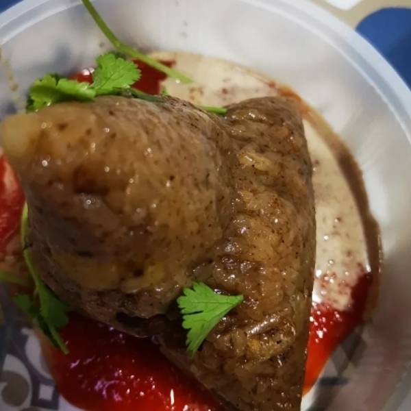与别家粽子不同的是,他们还特别准备了甜辣昔和花生酱,粽子软糯却不糜烂。