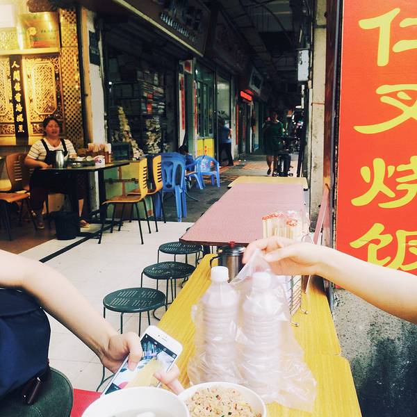 Cathy而后带我们去了一家非常非常地道的小吃街。很多顾客都是坐在店外的桌子旁边吃的