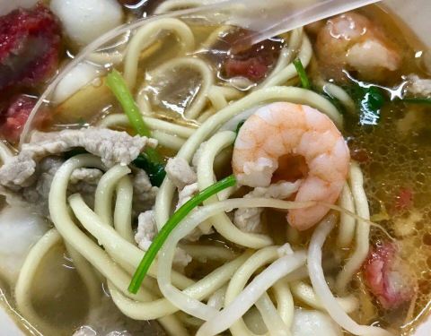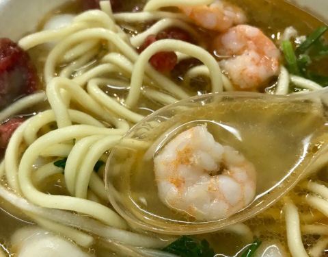 面不多,但是虾仁超多,鱼丸也好吃!食材很丰富,大大的虾仁在里面。汤的味道非常鲜美!强烈推荐