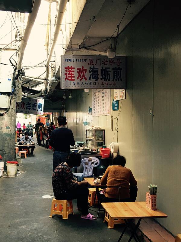 各种攻略上很红的一家海蛎煎,都说是最正宗的厦门口味。地方确实比较难找,从中山路平行的一条小巷子走进去才能看到他们的招牌。去的时候还早,貌似才开门,确实是当地人家在做。可能是比较见多识广,生意做的不...各种攻略上很红的一家海蛎煎,都说是最正宗的厦门口味。地方确实比较难找,从中山路平行的一条小巷子走进去才能看到他们的招牌。去的时候还早,貌似才开门,确实是当地人家在做。可能是比较见多识广,生意做的不错,我们三个人点了一份尝一下,有些爱理不理。这边的海蛎煎是那种煎成糊状的,有点粘粘的,口感还可以。真的和外面比起来,也没特别的鲜美或者惊艳,也许真的是这边的食材新鲜,所以作出的海蛎煎都比较美味吧。