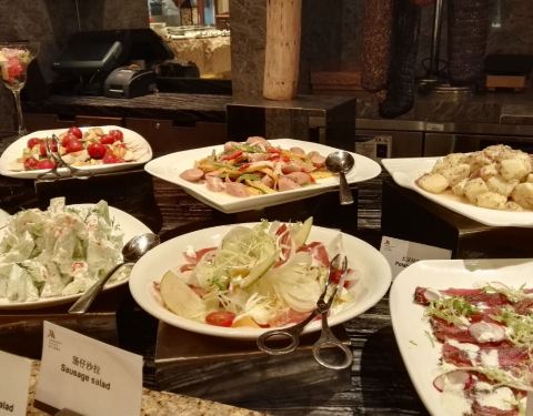 性价比非常非常高的酒店自助,来过无数次了,感觉都很好。三文鱼,北极贝,帝王蟹,虾这些常规的都有。炖汤热菜特别多,我比较喜欢炖汤这些,昨天去的还有椰子鸡,小龙虾,羊排,烤肉等等都有。每个季节都有特色,比如冬天有小火锅,昨天去的特色是香煎走地鸡,一出锅立马被扫空,还有东南亚菜。甜品也有,不过我不太喜欢甜品,所以没法深入评价,只能说品种也多,巧克力喷泉也有。总之这个价位的自助非常值得一吃再吃,服务也很好。现在还有个儿童游乐区,用餐的儿童可以免费玩。