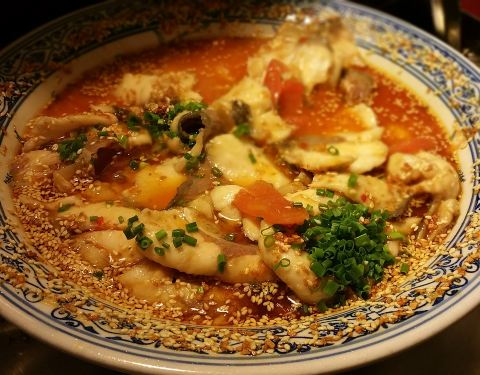 软件园佰翔中餐厅,环境还不错,进了大堂在右边,小桌也有半包隔离空间,喜欢椒麻黑猪肉,鸭舌,鸡蛋干黄瓜丝,青菜都还挺好吃的。特色菜柠檬酸汤鱼味道比较奇特,放了柠檬,腌渍黄瓜,还有番茄,因人而异的口味,还真的挺特别的。