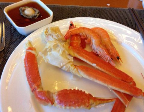 海鲜丰富新鲜,三文鱼满足吃货。大片生鱼片,让人回味。