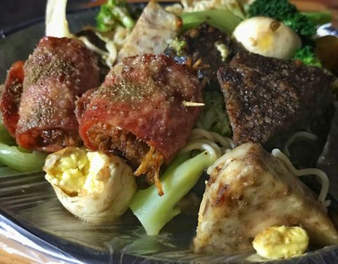 终于吃上了炸的厦门特色麻辣烫。要了米血/年糕/肉卷金针菇/鹌鹑蛋/大鸡腿/西兰花/芋头/生菜。加一份泡面。面底下是比较稀的花生酱拌起来吃。做的时候可以和老板说要多酱~ 两个人都最喜欢里面的烤茄子。只有两个人才能点的烤茄子。是一整根卖的所以有一大份。微辣的调味也不算太重口。 现在只能记起来那股花生酱的味道和逐渐冷掉的泡面还有茄子。