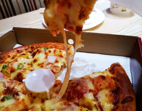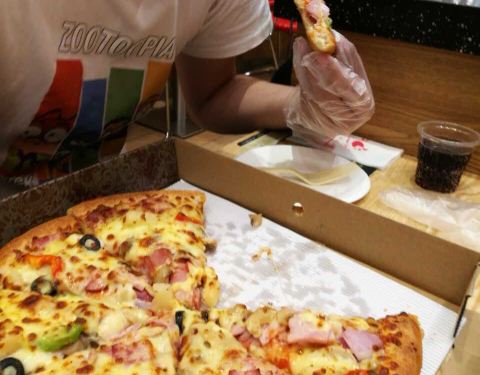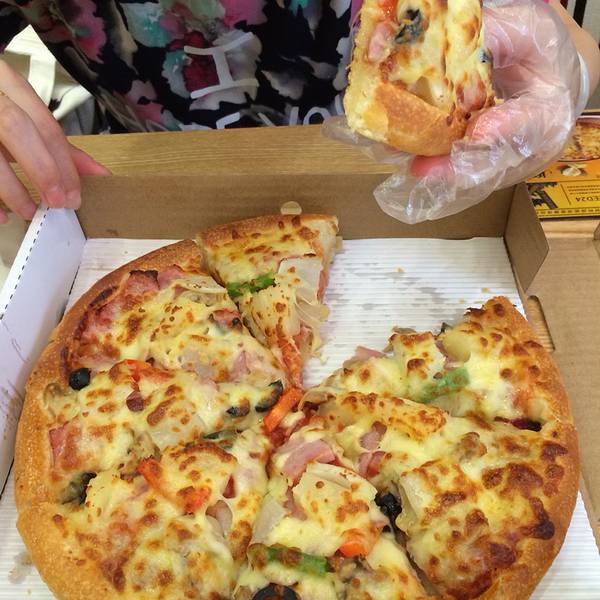 尊宝比萨,店面不大,卫生还算干净,欠缺的是通风效果不是太好,服务员态度不错,点单迅速,双倍芝士额外收费六元,拉丝的感觉超级棒,饮料柚子茶,一口下去,超级甜,太腻了,建议调整下甜分糖度,喜欢光顾他家的另外一个理由是性价比较高,不错不错。