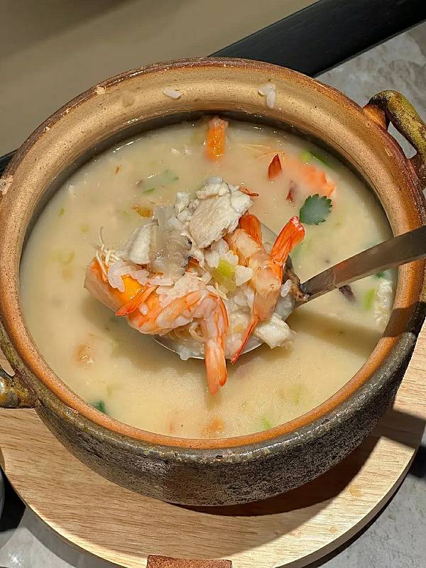 ✔️和牛慕斯图片造型独特甜而不腻好好吃 ✔️墨鱼春韭酥外皮酥脆香迷糊...又双叒叕来喝粥咯 他们家招牌龙趸鱼砂锅粥巨巨巨鲜美 每次带长辈来都会被夸 龙趸鱼用料很足,还加入了鲜虾 鱼肉鲜嫩刺也少 狂炫两大碗 ·