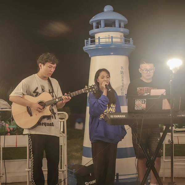 待到夜幕降临的时候,书店旁边的酒吧坐一坐,点上一些美食和一杯酒水,听一听乐队歌手抒情的歌声