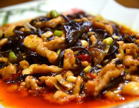 论一家川菜店的水准如何点个经典菜一试便知,水煮鱼便是我屡试不爽的一道菜。一端上来香气四溢辣油味立马充斥着整个房间,小心拨开辣椒夹出一片乌鱼肉,沾着辣油的鱼肉晶莹透亮,吃一口肉质滑嫩紧实麻辣鲜香。 曾经有一个段子流传甚广,说某人到四川餐馆就餐点了一盘鱼香肉丝,食客大快朵颐之后却感觉哪里不对,“老板!这鱼香肉丝里怎么没有鱼?”以上都是玩笑话,鱼香肉丝可是我上学时和室友最喜欢的一道下饭菜, 和蒜泥白肉一样色香味俱全,堪称配饭绝佳。