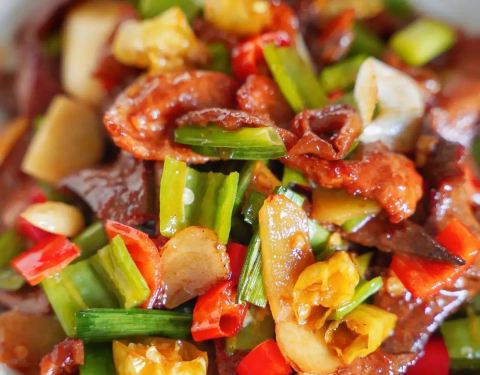 尖椒炒海参鲍鱼,这道胶原蛋白满满的美味佳肴,选用了切块的海参、鲜鲍鱼辅以蒜台、青椒、小米辣、洋葱块,没想到海参还挺入味的。